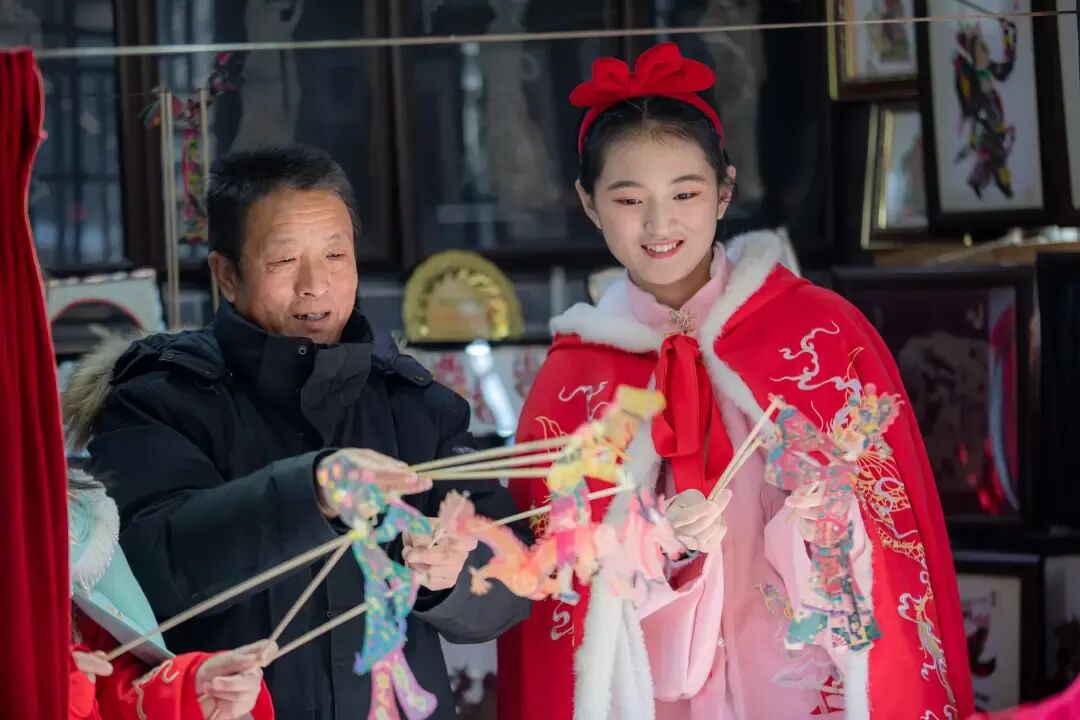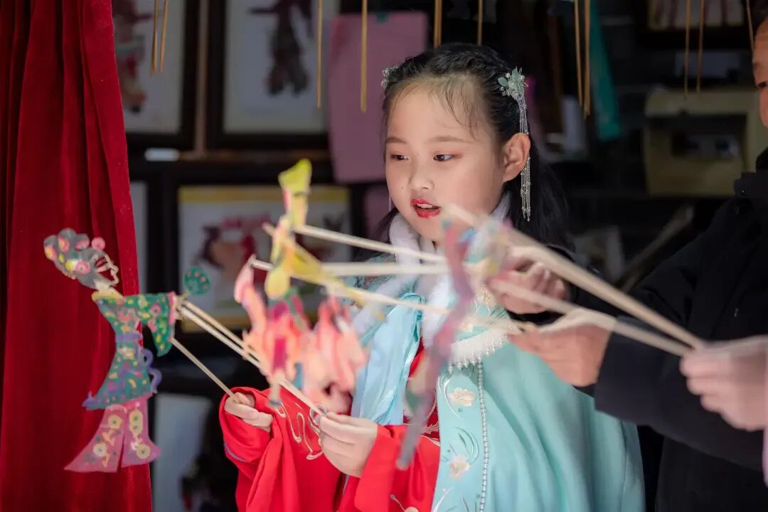 更挑升念念的是,看一场皮影戏,一方幕布演绎百态东说念主生,孩子们看得心神专注。适度后,诚恳傅应孩子们央求,教他们支配竹签。从幕前到幕后,孩子们发轫作为奸诈,经尝试,陈腐故事在指尖冉冉被点亮,眼中尽是新奇承诺。这场皮影戏的体验,在孩子的寒假记念里当前了深深的图章。