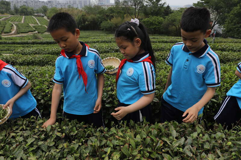 5月22日,山东日照,岚山区履行小学二年纪的学生们在北门外社区的茶园里进行采茶研学,在亲自体验中了解茶叶的历史和制茶经由。近60年前,南茶北引试种在此生效,该地也因此被誉为“南茶北引第一村”。比年来,这里依托地域传统特点,打造了茶主题公园、茶文化馆、特点民宿等文旅概括体,眩惑了很多搭客前来打卡体验。中青报·中青网记者 孔斯琪/摄