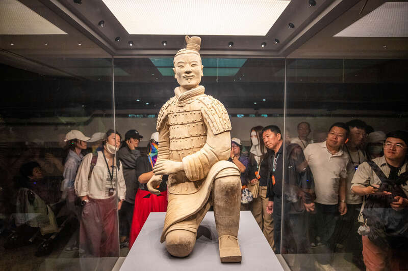 5月18日,陕西西安,搭客在秦始天子陵博物院内参不雅。今日是第49个海外博物馆日。视觉中国供图