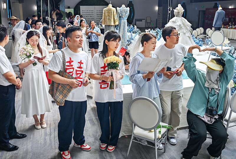 5月21日,湖北武汉,青山江滩的婚配登记处迎来成婚领证的岑岭,很多新东说念主列队登台拍记挂照。比年来,“520”“521”因谐音“我爱你”,渐渐成为新东说念主们登记成婚的东说念主气吉日。2025年的“520”“521”虽非双休日,热度却涓滴不减,受到开阔新东说念主蛮横追捧。视觉中国供图