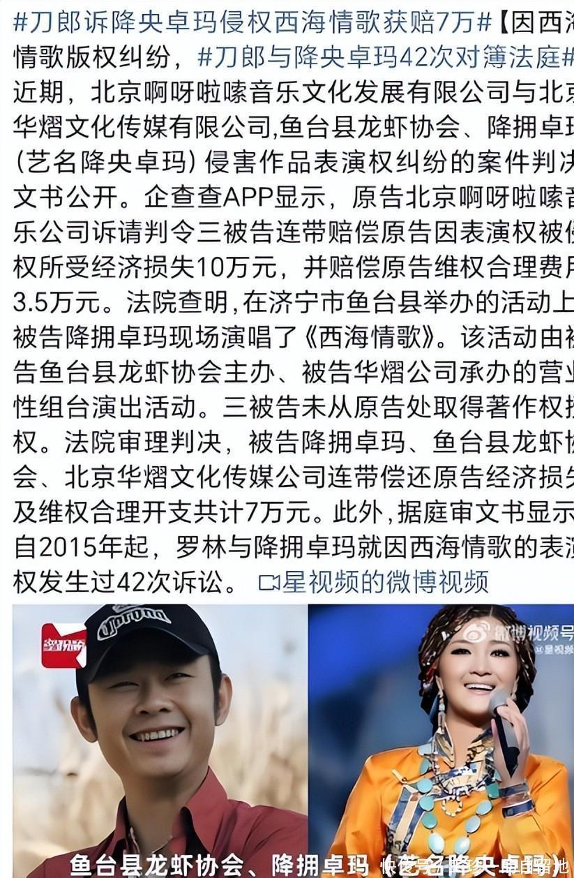 但没什么恶果,最终刀郎疾首蹙额,在2015年追究告状降央卓玛。