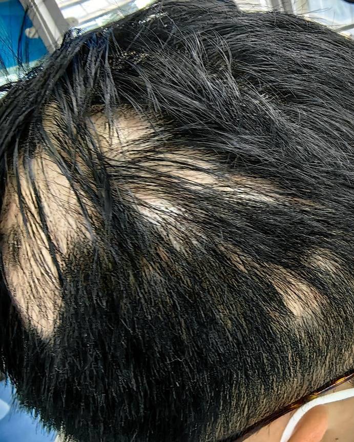 本年四月的一天早上,李先生醒来发现头顶有一派头发没了,那块头皮很光滑,不痛不痒,但很较着。因责任贫穷,“仅仅在通勤路上用手机查了查,网上好多东谈主说斑秃可能会我方复原,我也就没多思。”李先生暗意。