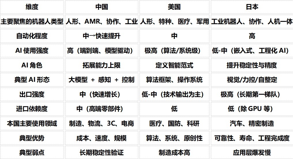 临了,让我们望望中好意思日三个国度的机器东谈主款式。