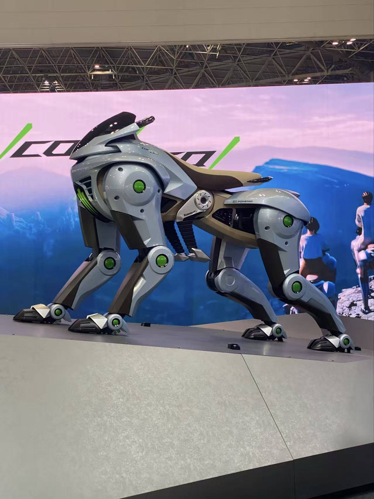 日本不搞东谈主形,然而有东谈主形的前列“四足”。这次在东京机器东谈主展上看到了川崎的CORLEO,这是一种主张型四足机器东谈主载具,使用氢能源,接济东谈主类骑乘与复杂地形穿越。