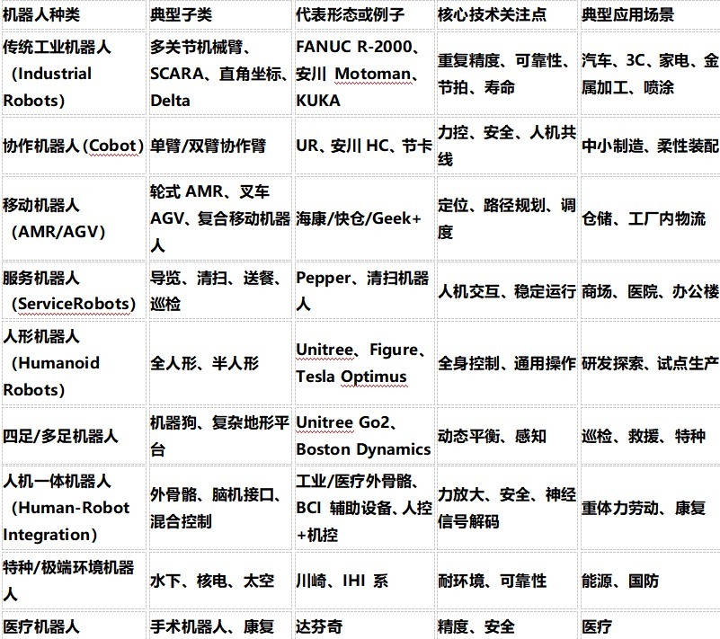 机器东谈主不啻东谈主形机器东谈主,还有传统的工业机器东谈主、妥洽机器东谈主、医疗机器东谈主等。本体上,目下海外上通用的分类形势,最基础的分类就是工业vs非工业机器东谈主。
